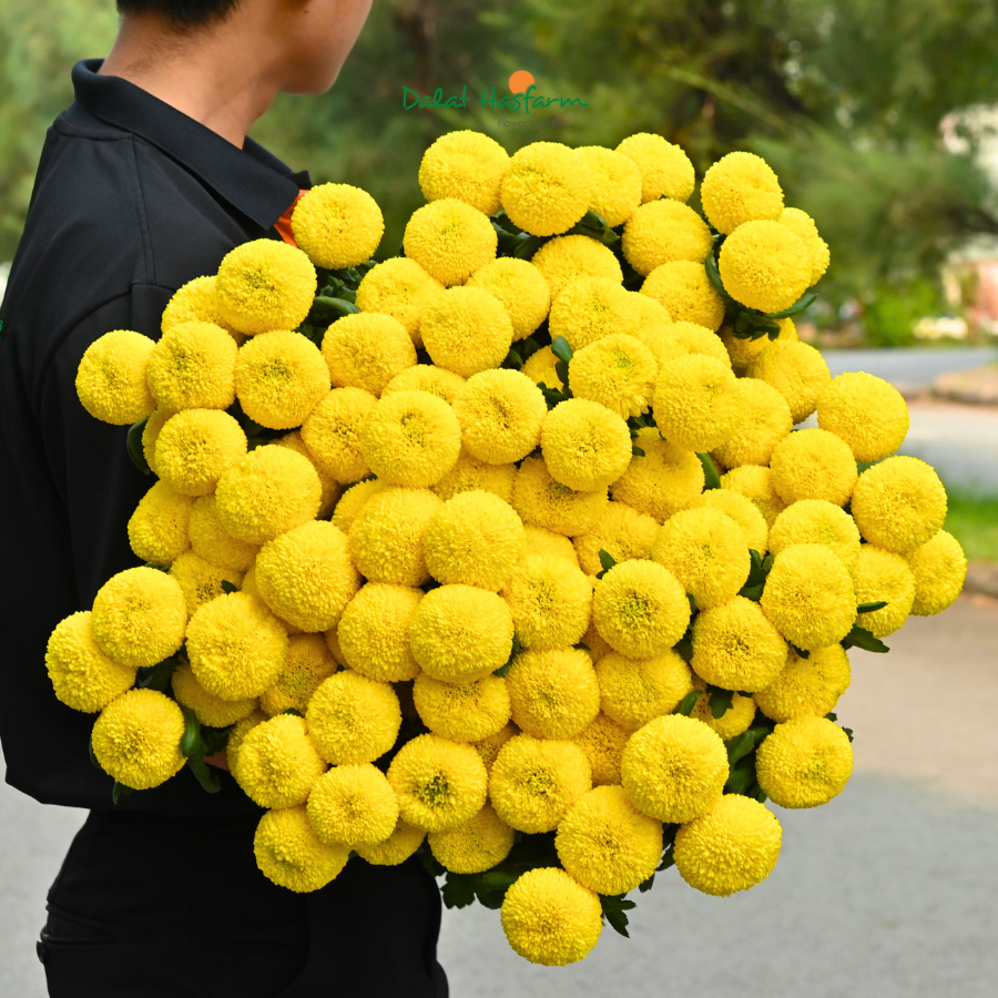 Màu vàng luôn là gam màu “bán chạy” trong mọi mùa: tượng trưng cho may mắn, thịnh vượng và cảm giác ấm áp. Với ba giống hoa vàng đặc trưng – Kogioku, Ping Pong Golden, và Anastasia Sunny – Dalat Hasfarm mang đến những lựa chọn phù hợp cho những cửa hàng hoa, chợ sỉ và tiểu thương để đa dạng hóa mẫu mã và tăng sức hút cho sản phẩm bày bán.