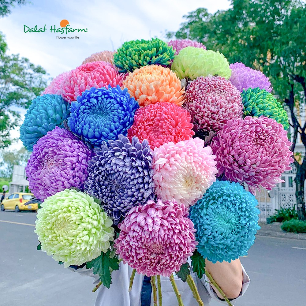 - Cúc Mẫu Đơn Trắng có thể ứng dụng công nghệ nhuộm hiện đại từ Hà Lan, cho khả năng nhuộm lên đến 70 màu khác nhau
