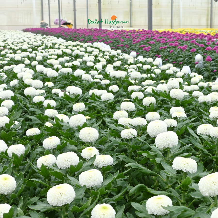 Cúc Ping Pong trắng của Dalat Hasfarm chính là lựa chọn đáng cân nhắc để tối ưu hiệu quả kinh doanh mỗi ngày.