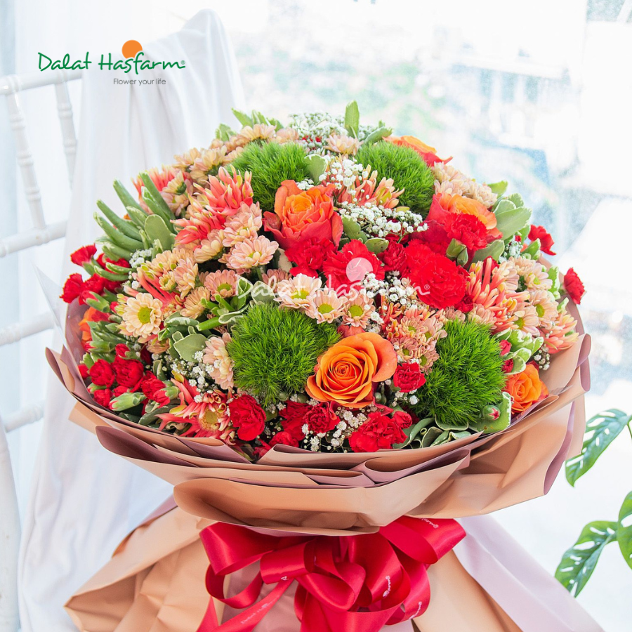 - Bạn có thể linh hoạt kết hợp cùng: Cúc Tana, Cẩm Chướng, Calimero, Cát Tường hay các loại Cúc nhánh Dalat Hasfarm giúp thiết kế trở nên bay bổng, tinh tế hơn.