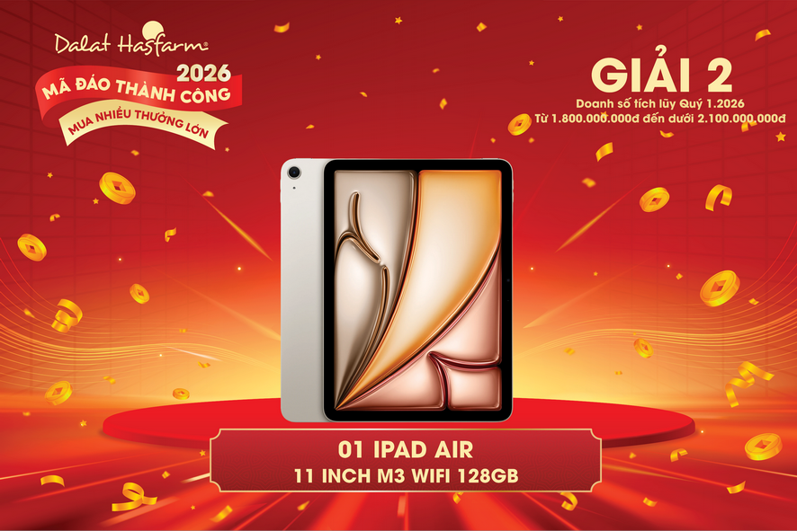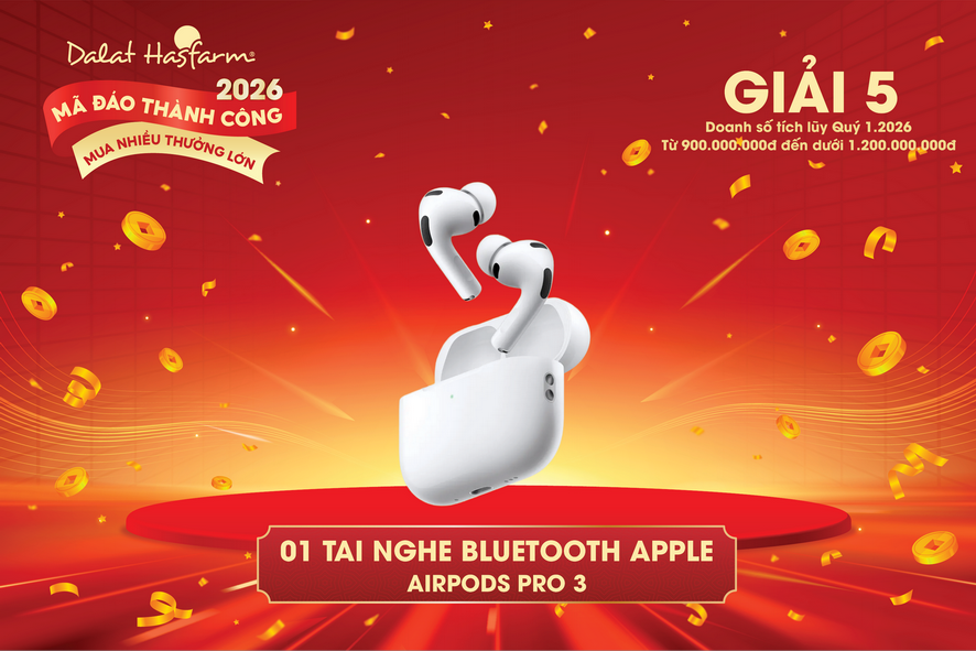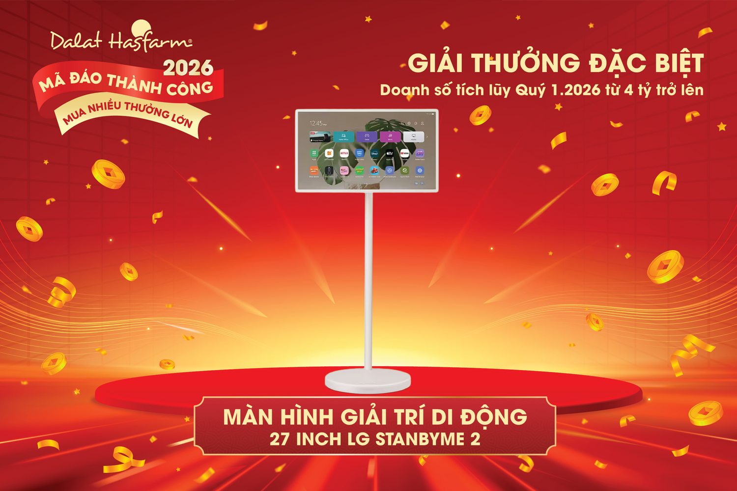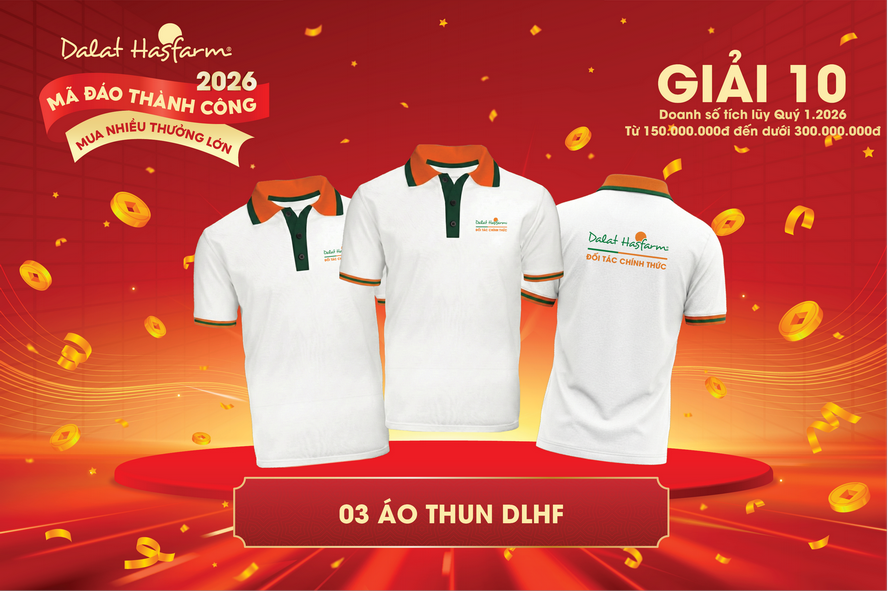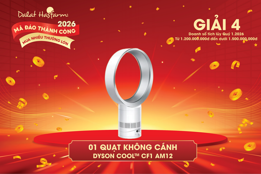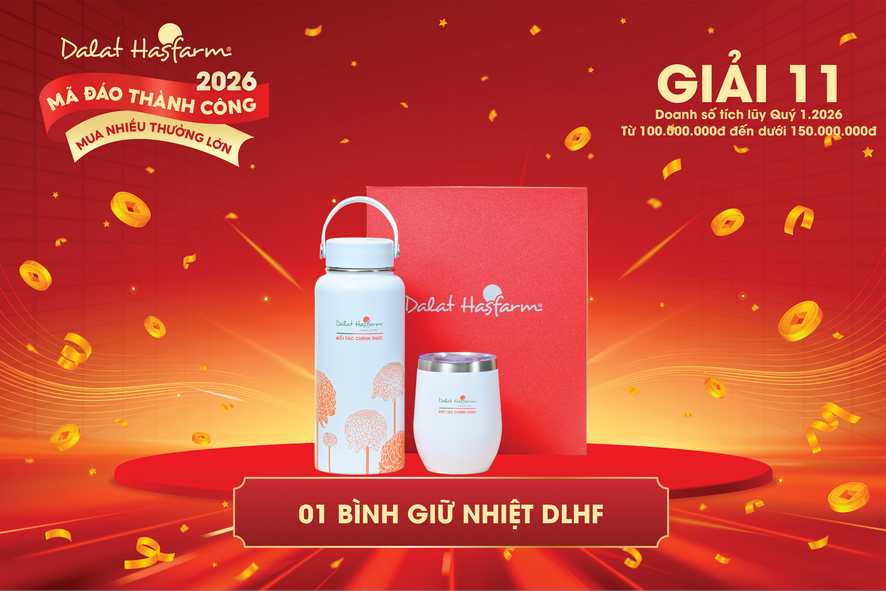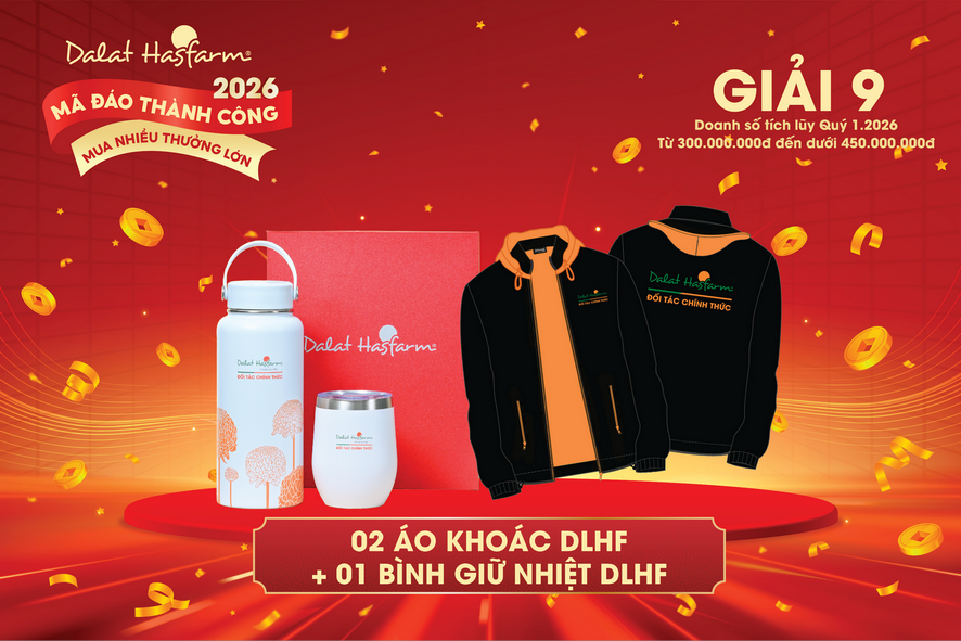 - Quà tặng Quý 1 sẽ được nhân viên Dalat Hasfarm xác nhận thông báo đến Quý khách hàng và trao thưởng vào tháng tiếp theo. Giải thưởng Quý sẽ được công bố và trao vào dịp tổng kết Quý 1/2026